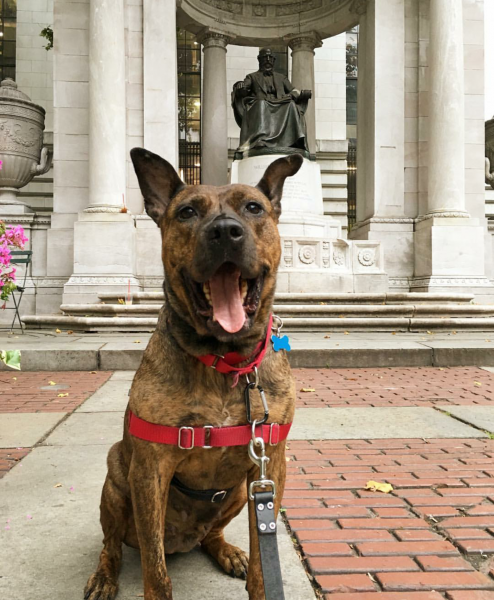 Our girl is housebroken and knows basic commands. She also just loves going for long walks and taking in the sights and sounds of the world.