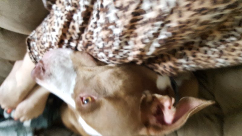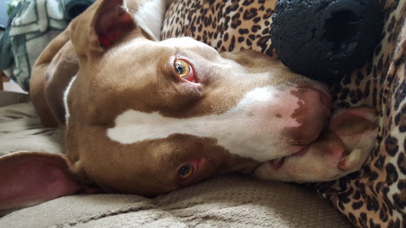 Brooklyn is a big boned 75lbs 7-8 year old American Staffordshire terrier mastiff mix who is well mannered, laid back, amazing boy. His outgoing loving personality will increase your heart size at least 3 fold. Brooklyn is a master at giving you the puppy eyes and redefines the art with his uniquely crackled spider web amber eyes! He also likes to stay classy and crosses his paws when he lays down. Brooklyn has previously lived with animals but prefers to be the only animal in the home. However, a home with other animals is an option for him.