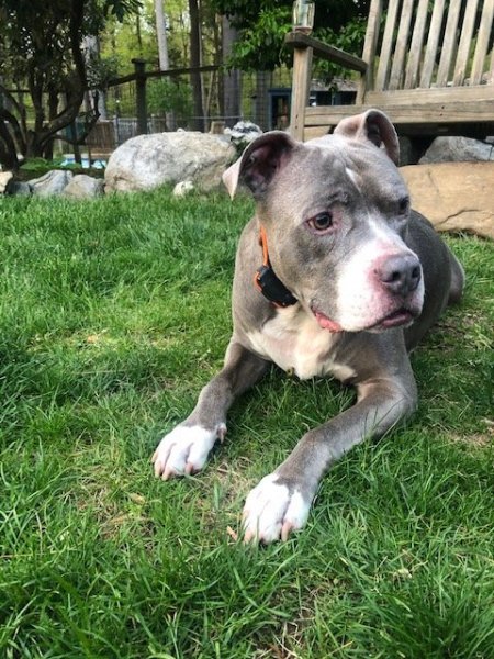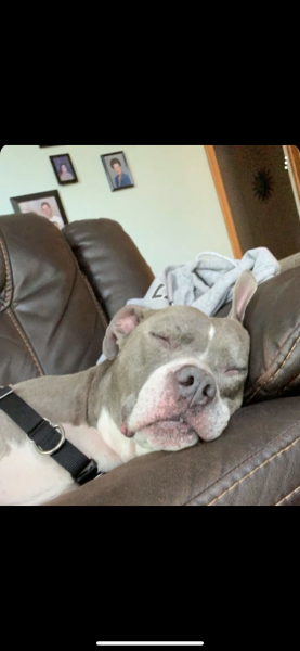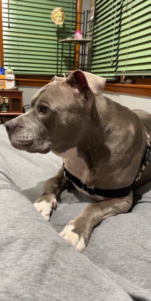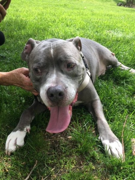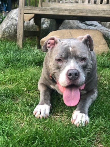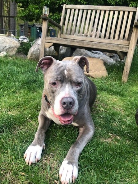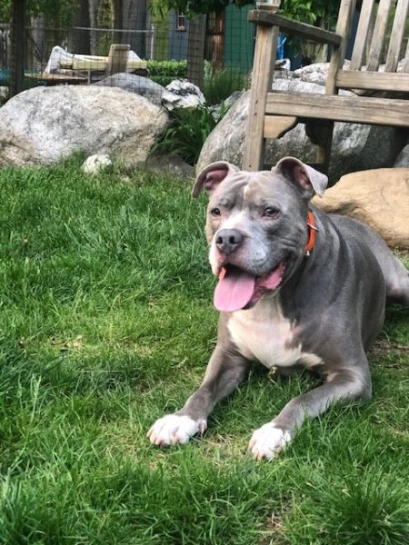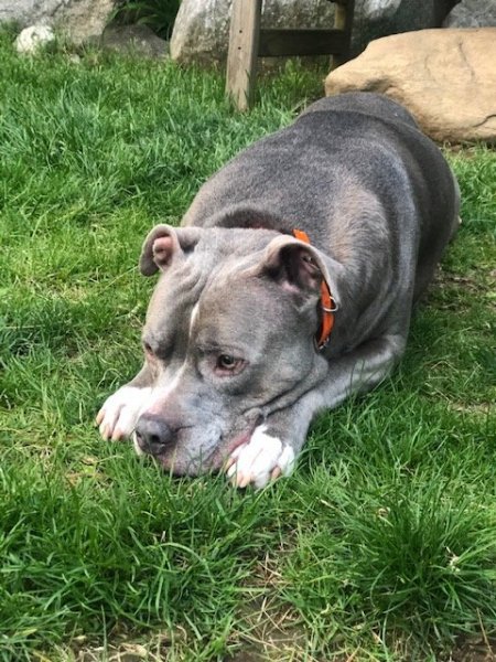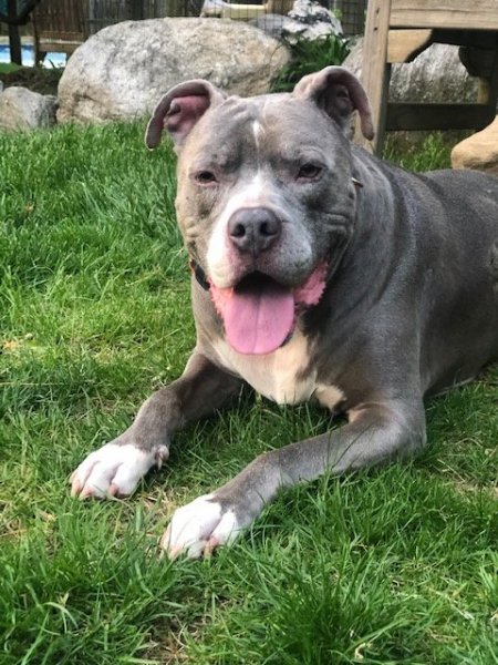 This steele blue 9 year old staffie boy comes to you at 75lbs of love. He adores other people and exceeds your expectations in all his endeavors. Give Bular a task; and, he will strive to accomplish it!