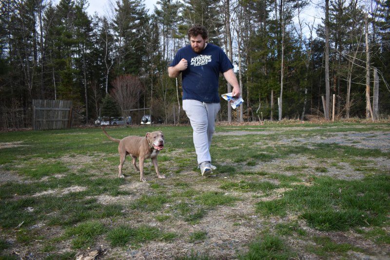 Chucky isn’t usually bothered if his food or treats are touched or taken away. However, he will gently grab the person’s hand with his mouth and move it away so that his food isn’t taken away.