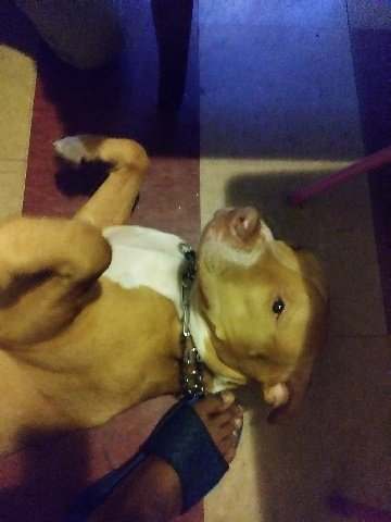 Gizmo is a sweet 2.5 year old white and gingerbread pittie boy with a heart breaking story. His family, who had him since he was 5 weeks old, must surrender him because the mother and daughter have terrible allergies. The daughter needs regular asthma treatments now and is suffering. Gizmo just adores children and other dogs. He currently lives with a shih tzu and they, and the little girl, are partners in crime.