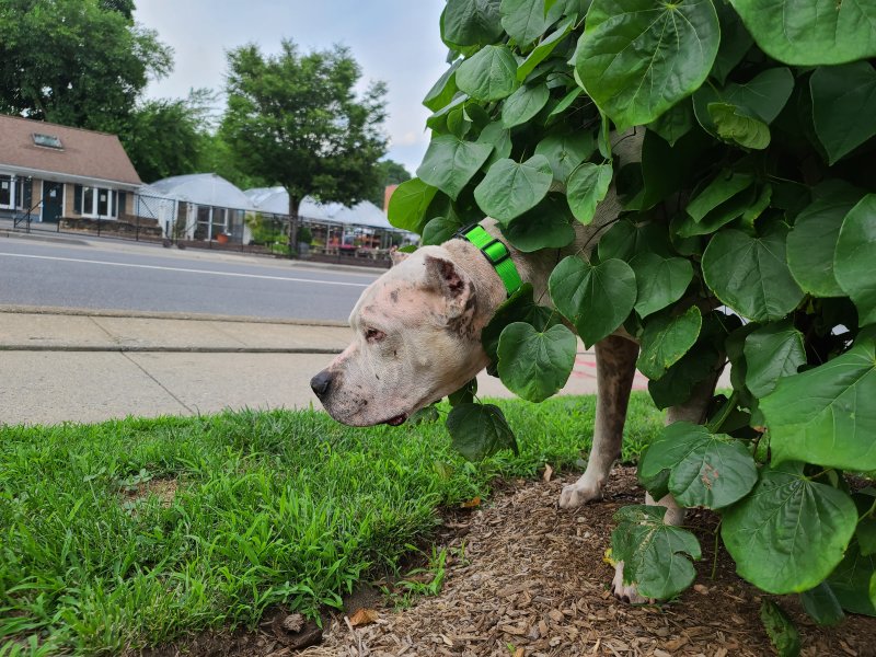 Hazel listens to directions, knows basic commands, and is eager to please. She also enjoys leisurely strolls, meeting new people, and making dog friends. She would love a home with a yard or in the suburbs/rural area. Hazel would love to stop and smell all the flowers, roll in the grass, and walk with her family. She just loves pack walks!