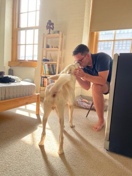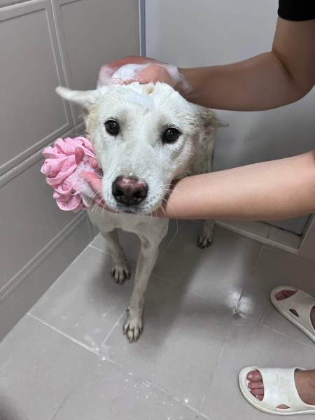 Hoonmin is a 4 year old jindo mix foof, goof, and smoosh! Just about 45 lbs, this white fluff ball is too cute and good for words. So, allow us to attempt to do him justice. Hoonmin is a sweet and calm boy that can adjust to just about anything. While initially shy, he comes out of his shell quickly and loves meeting new people. Since his rescue, Hoonmin transformed and gained confidence. He gets along with and respects dogs, cats, and enjoys meeting new friends on walks. Initially, Hoonmin was afraid of the busy city life, but has since started to adjust. He would love a home in the suburbs or rural environment, but will always be a Brooklyn boy at heart. Hoonmin is a great listener and travel companion.