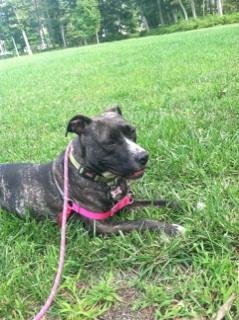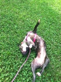 Before she was a Twenty Paws dog, Lucille was in a shelter with BSL and would not allow her to be adopted. Thus, only out of state rescue could save her. If not, then bully breeds are put to sleep to make room for the lamentable cycle to continue. The shelter volunteers contact us desperate to help this girl the morning she was scheduled to be put to sleep. Lucille came into the shelter with 7 puppies. They were all pulled by another rescue, poor Lucille was left behind. No one knew that those were her babies since the shelter placed them in separate cages. When we pulled her from the shelter, we saw that she is very underweight. However, she is now completely healthy.