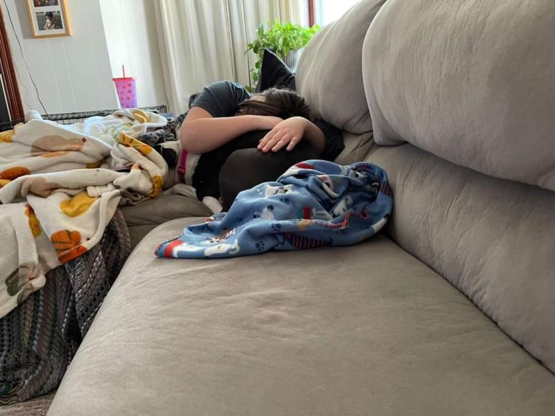 Whether snoring at full snuggle capacity or sporting the latest trends on a hike outside, Miss Bow is a delight to have. She is housebroken, spayed, vaccinated, and chipped.