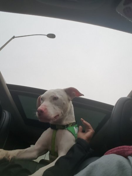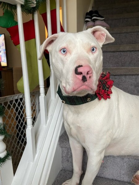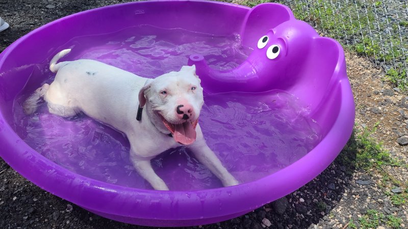 Simon is literally the happiest boy in town. He is constantly smiling and ready to make you hold your belly in laughter. This 5-6 year old 80lb deaf white Dogo Argentino is super dog friendly. There is just no resisting this boy. He loves to cuddle right up under, over, to the side of you or a fur sibling. He will lay there and snooze the day away right by your side. Not in the mood for a nap? Simon has energy to take on the day with you- hiking, swimming, or being a trusted co-pilot. Seriously, this boy loves to play, smile, and anything to do with water- even baths! He absolutely LOVES the water. Rolling around in the kiddie pool is literally his favorite activity! He is the best dog sibling they could ask for. Sorry kitties, Simon and you wont be friends, he reserves his loves to humans and dogs.